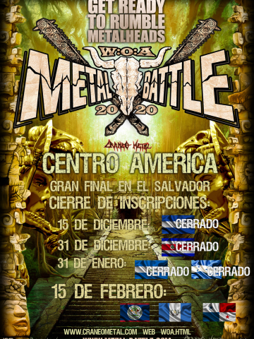 La etapa de "Inscripción" a la Metal Batalla al Wacken por Centro America cerró el dia de ayer en Nicaragua y Honduras. Las bandas inscritas y con el proceso completo al dia, QUBIT e IXKAL serán las representantes de los dos países y avanzan a la final en El Salvador junto con los locales, EL GRAN KOALA.