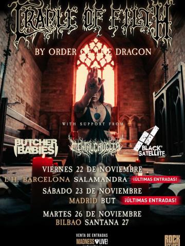 Cradle of Filth la banda británica de Metal Extremo, estará éste fin de mes en España con su tour By Order of the Dragon. Quienes no han visto a Danny Filth y los suyos tiene toda una oportunidad de verles de cerca, el 22 en Barcelona, para luego al dia siguiente estar en Madrid y cierran el 26 en Bilbao.