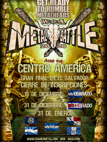 La productora del evento en El Salvador ha mostrado ya el arte y los detalles de su final camino al Wacken. La misma se realizará en Buho´s Pizza el día 18 de Enero a partir de las 7 pm. La entrada tendrá un costo de $4 y las bandas participantes serán El Gran Koala, MOAN y Diente Amargo.