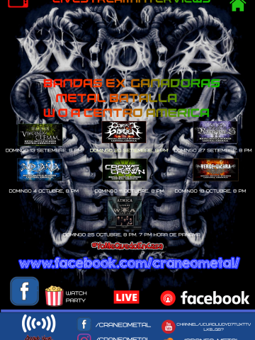 Continuando con las entrevistas que han subido sustancialmente de seguidores, ahora bajo Facebook, Jorge "Garga" Morán continuará las mismas, pero ahora en un horario de 8PM siempre en nuestra página de Craneo Metal en dicha red social: