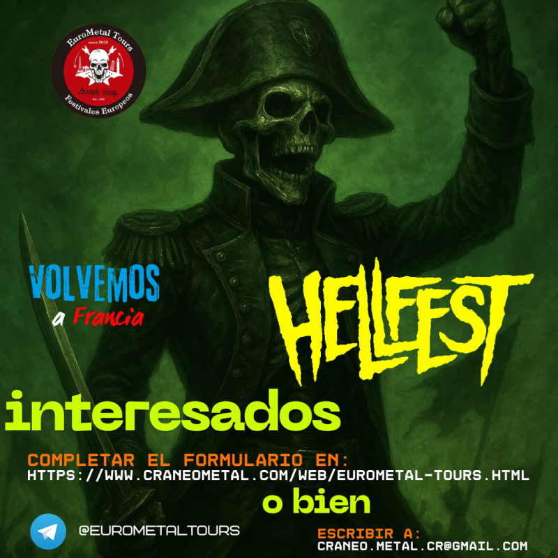 ¿Listo para sumergirte en el mayor festival extremo de Europa? Eurometal Tours, en exclusiva para la comunidad de craneometal.com, te invita a un tour al Hellfest 2027 en Clisson (Francia).