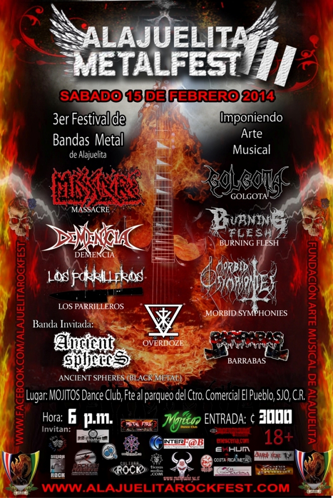 Bueno gente, como en Alajuelita la Muni no quiere nada que ver con el Metal y eventos, se realiza el Alajuelita Metal Fest III fuera de esas tierras... sería en MOJITOS Dance Club - Frente al parqueo del Centro comercial El Pueblo, antiguo Plaza Disco Club, San José, Costa Rica. www.facebook.com/ MojitosDanceClub