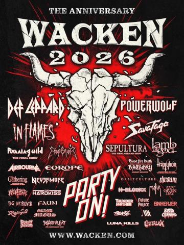 Con excelentes exponentes donde destaca la presencia de Def Leppard, Powerwolf, Savatage, In Flammes, el tributo de las leyendas Bathory, ultima presentación en Alemania de Sepultura y Lamb of God y bajo el lema de "Party On", anuncia el Wacken Open Air las primeras bandas para la edición del 2026.